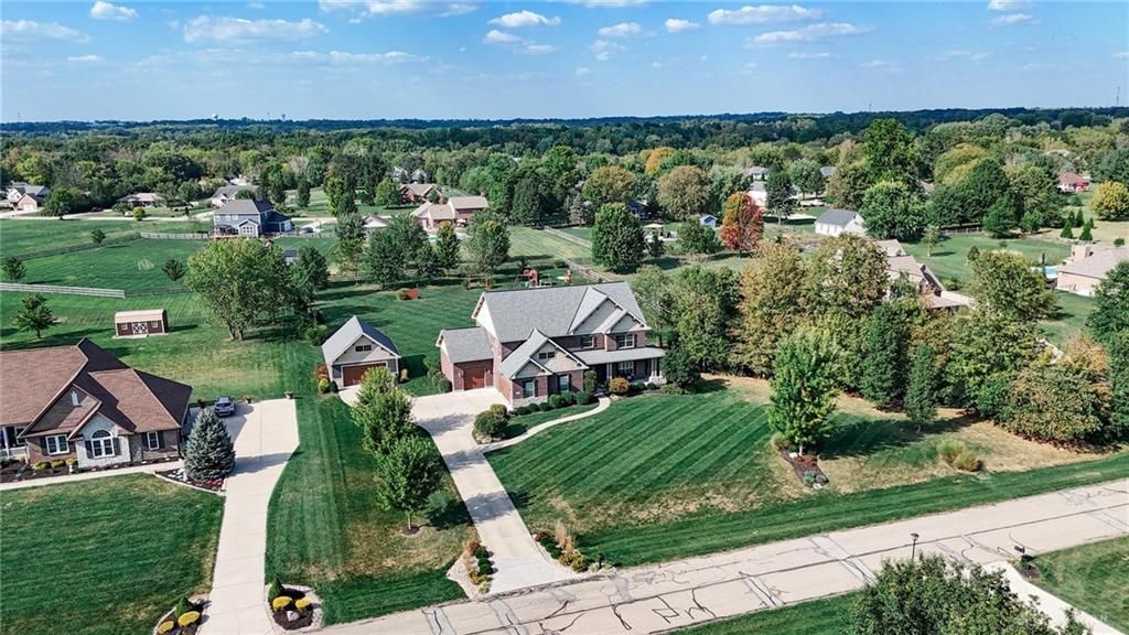 Stunning 5,831 sq ft home on 1.5 acres blends luxury and convenience—your private retreat minutes from shopping and highways. The open first floor showcases hardwoods, a coffered-ceiling great room w/gas fireplace, and a gourmet kitchen w/granite, stainless, and a huge island. A formal dining room features board-and-batten wainscoting and plantation shutters. The first-floor study w/full bath offers ideal flexibility as a guest room or potential primary suite. Upstairs, the expansive primary suite includes a sitting room, two walk-in closets, and a spa-like bath w/soaking tub, dual vanities, and walk-in shower. Three additional bedrooms include one ensuite and a Jack & Jill, plus open loft. 1st & 2nd floor laundry rooms! The finished lower level adds a rec room, theater, bedroom, and bath. Enjoy outdoor living on the covered porch or patio w/stone fireplace. Oversized 3-car attached and detached 2-car garage w/unfinished loft complete this exceptional home!