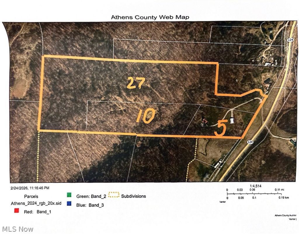 If PRIVACY WITH A CONVENIENT location is #1 on your list- this property is for you! Public water, natural gas, electric at SR 124. Septic will need to be installed by new owner. Multiple building sites. White Oak, Red Oak, Maple, Pawpaw, Poplar. Select cut 18 and above four years ago. Survey 2022. Appointment is required to tour the property. Preapproved buyers only per seller. A shared driveway agreement and a ROW to the well will be prepared by an attorney prior to closing. This agreement will be between the new owner of the 26.9 acres and the seller. The seller is the owner of the log home and the pole building. DRONE video with photos and an approx. boundary line is available!! Approximately 10 miles from Hockingport, 12 miles from Belpre, OH, 26 miles to Marietta, OH, 15 miles to Parkersburg, WV, 28 miles to Mason, WV. Please note MLS# is the Log Home, pole building and 5 acres for $599,900.00 and MLS# is Log Home, pole building and 42 acres for $799,900.00. The log home, pole building on five acres has mineral rights, free gas to the log home and pole building, solar panels, whole-house standby generator. Mineral Rights on for the 37 acres is Unknown. Windstream Fiber Optic Internet, Little Hocking Public water approx $100/mo, AEP approx $500.00/YEAR after the solar overage, Septic inspected by Athens Co HD and pumped Winter 2024/2025.Trash options Rumpke,Waste Management.