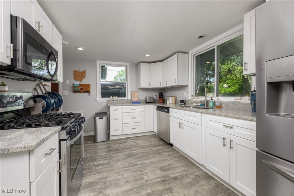 Welcome to a home that truly understands the rhythm of modern living. This beautifully remodeled 3-bedroom ranch offers a seamless turn-key experience, allowing you to skip the projects and start living from day one. As you step inside, you are greeted by an expansive open-concept layout where natural light pours across gleaming hardwood floors, creating an atmosphere that feels both airy and incredibly grounded.The heart of the home is the kitchen?a space where function meets high-end aesthetics. Featuring sleek granite countertops, stainless steel appliances, and newer cabinetry, it's designed to be the centerpiece of your daily routine, whether you're brewing morning coffee or hosting a multi-course dinner for friends. The kitchen flows effortlessly into the dining and living areas, ensuring that the person cooking is always part of the conversation. The living space extends through sliding glass doors to your own private outdoor sanctuary. Situated on a rare .45-acre lot, the backyard is fully enclosed by a handsome wood privacy fence. It is a massive canvas for your imagination: envision summer evenings around a fire pit, a sprawling garden, or a secure playground for your four-legged companions. Rest and versatility await in the three generously sized bedrooms, each offering ample closet space and the flexibility to create a dedicated home office, a creative studio, or a guest retreat. Practicality isn't overlooked, either; the newer concrete driveway leads to an oversized two-car garage. Just minutes from a vibrant mix of local shopping and dining, yet seconds away from the serene, scenic trails of Sand Run Metro Park. This home isn't just a place to stay; it's a sanctuary designed for comfort, convenience, and a deep connection to the outdoors. Schedule your tour today and see how effortless life can be when every detail is already taken care of.