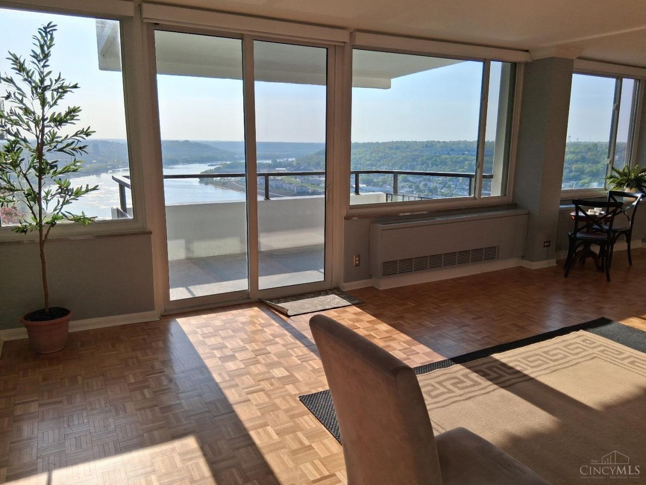 Relax & enjoy the magnificent views of the Ohio River & valley. Flexible spaces bathed in natural light. 9ft ceilings and beautifully refinished hardwood floors, refinished walls, crown molding & baseboards. Raised vanities. Spacious closets with additional storage in building. 24-hour attendant & Fitness Room. Laundry in Building. Two Parking Spaces (1 garage/1 outside) plus additional for guests. HOA includes 24hr security, heat, AC, water, sewage, trash, window cleaning, internet, snow removal, common area maintenance, reserve fund, building insurance, landscaping & prof. management. Enjoy this prime location w/easy access to all Cincinnati has to offer.