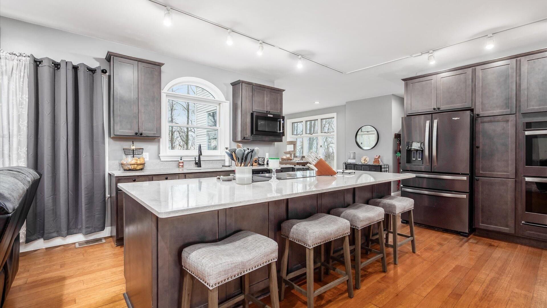 This sprawling Cape Cod has room for everyone, offering more than 3,600 sq. ft. plus a finished walkout basement. The main level features a spacious owner's suite with a cozy gas fireplace, soaking tub, and walk-in closets, along with the convenience of first-floor laundry. Upstairs, three generously sized bedrooms each include walk-in closets, and the additional living area and bonus rooms create the perfect setup for teens, guests, or an in-law suite--almost like having a private apartment. The walkout basement provides even more living space with a family room and bar area, plus a large unfinished section ready for your personal touch. Updates over the past few years include a stunning new kitchen with granite countertops and Wi-Fi capable appliances, refreshed flooring, a three-level composite deck, a newer roof, and more. Finished sq. ft in basement is approximate.