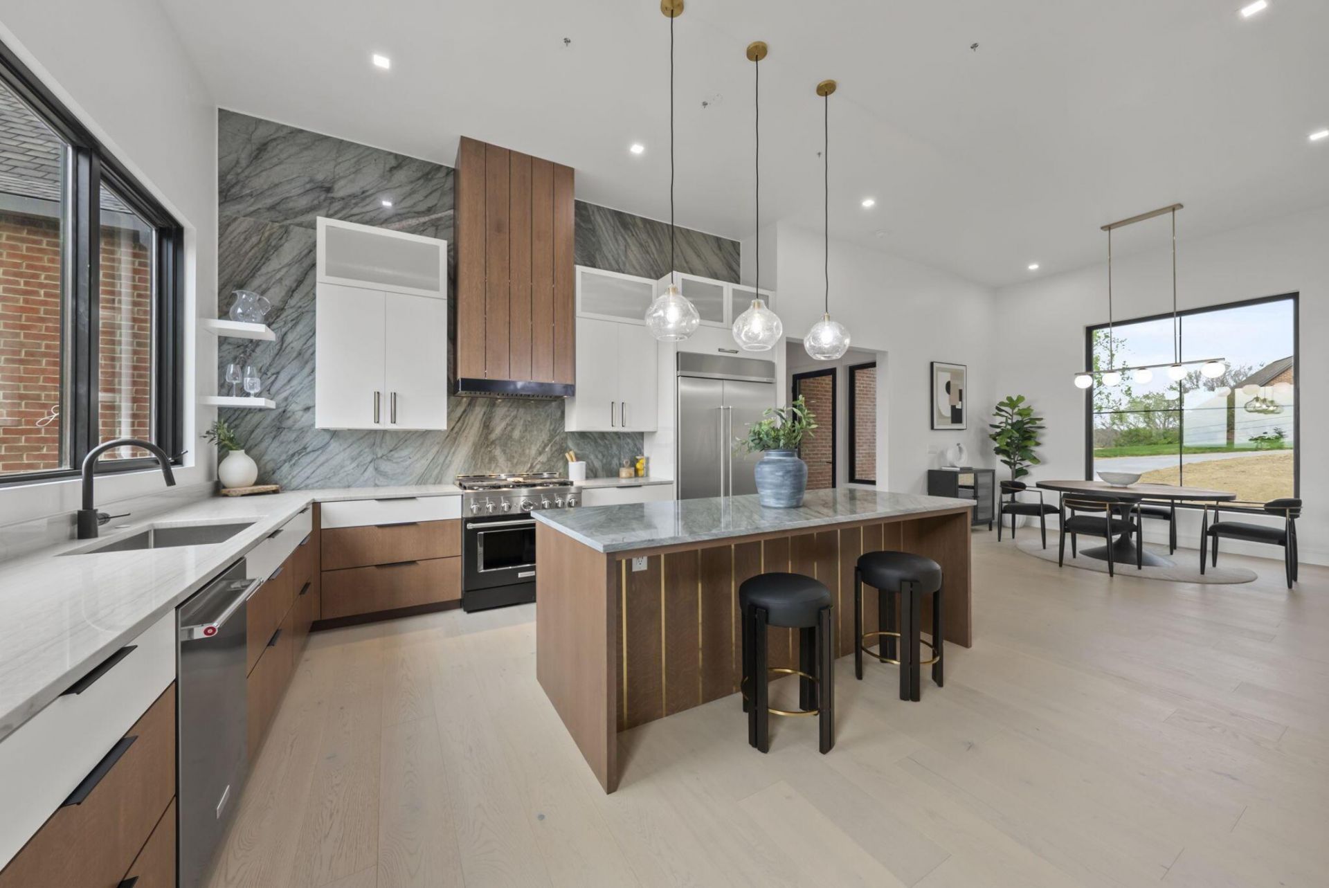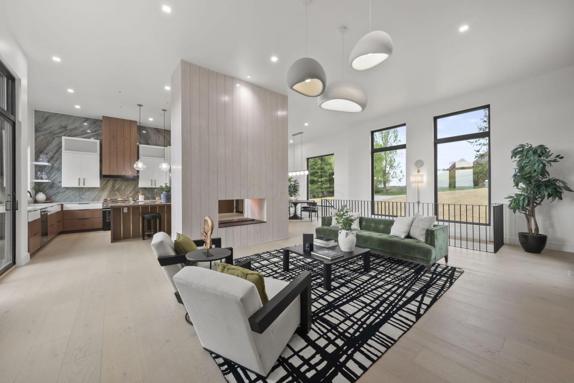Panoramic views from every angle in this Granville masterpiece. This custom home was just completed with intentional design, premium finishes, and a versatile floor plan. Perched on a 1.64 acre lot with sweeping ridgetop views, this 5BR + 4BA home is located in desirable Erinwood. The main level welcomes you with soaring 12 ft. ceilings and oversized windows that capture every scenic moment. A bespoke chef's kitchen with clean lines, concealed outlets, gas range, island with brass inlays, and a vapor fireplace feature wall that leads into the living space. Entertain or dine al fresco on a spacious deck with unparalleled vistas. The private primary suite features a generous spa-like bath and 2 walk-in closets. Two additional bedrooms, full bath, first-floor laundry, and walk-in pantry share the main level. Walk-out lower level with 10 ft. ceilings that showcase a swanky wet bar, custom woodwork, open living area, and an additional 2BR + 2BA. Relax and unwind in the built-in sauna. Reimagine unfinished spaces that could accommodate future amenities like a home gym, move room, or golf simulator. A rare opportunity for the most discerning buyer: this is the one you've been waiting for.