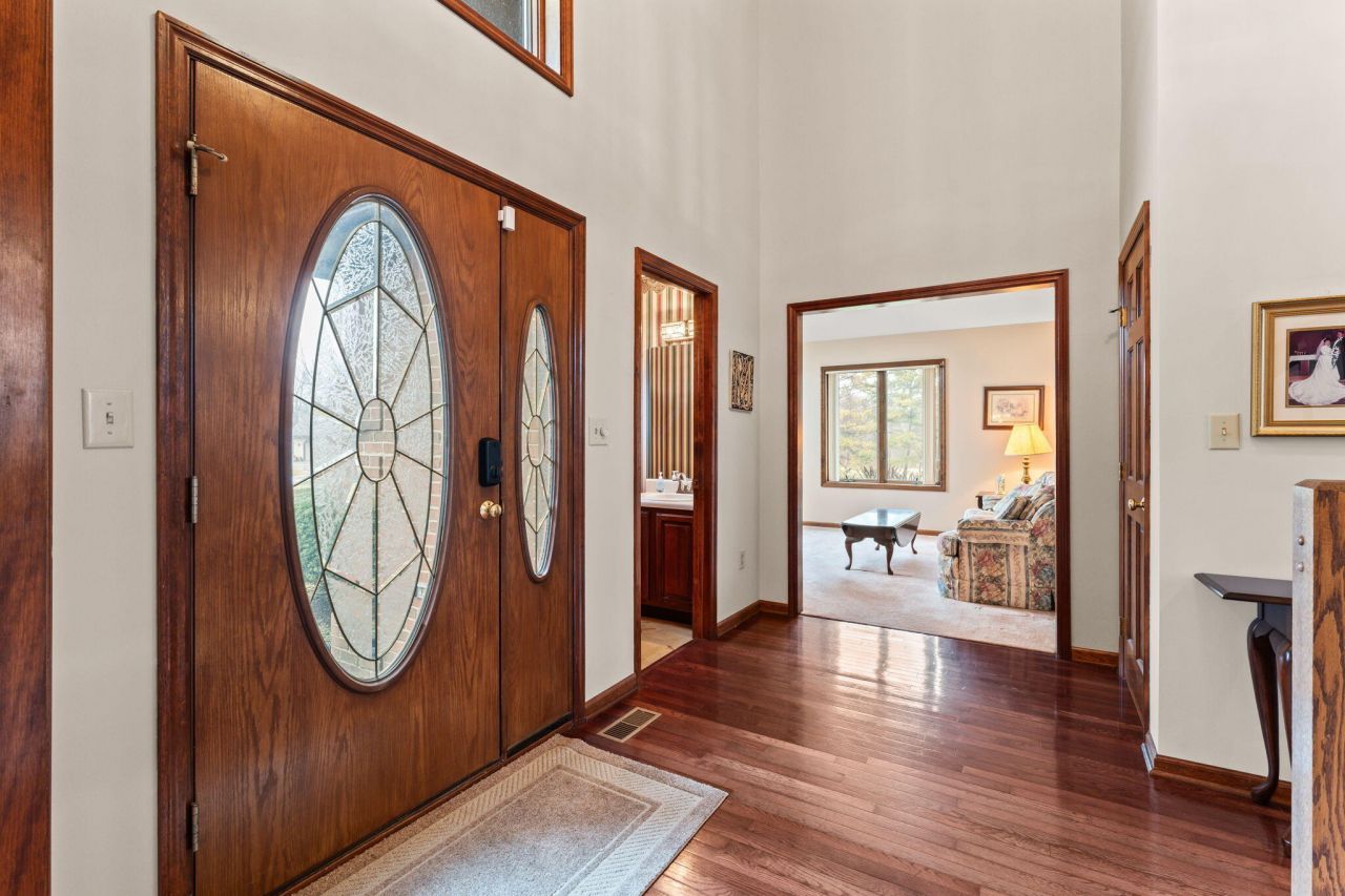 Quality, space, and a setting rarely found in this area define this exceptional estate situated on nearly 3 acres with access to two scenic ponds and a private, park-like backdrop. Offering 4,760 square feet, this stately brick residence is complemented by an attached 3+ car garage with service entrance and a separate 2 car freestanding brick garage.Inside, the home features six spacious bedrooms, a finished walkout basement, soaring vaulted ceilings, crown molding, solid 6-panel poplar doors, hardwood flooring, two fireplaces, and an open staircase with mezzanine walkway overlooking the grand entry and expansive family room creating architectural presence and an elegant, open flow throughout.Pictures of the stunning outdoors to come.Carpets being cleaned 3/9/26Taxes are HomesteadNew Buyer will receive an Americas preferred Home Warranty *