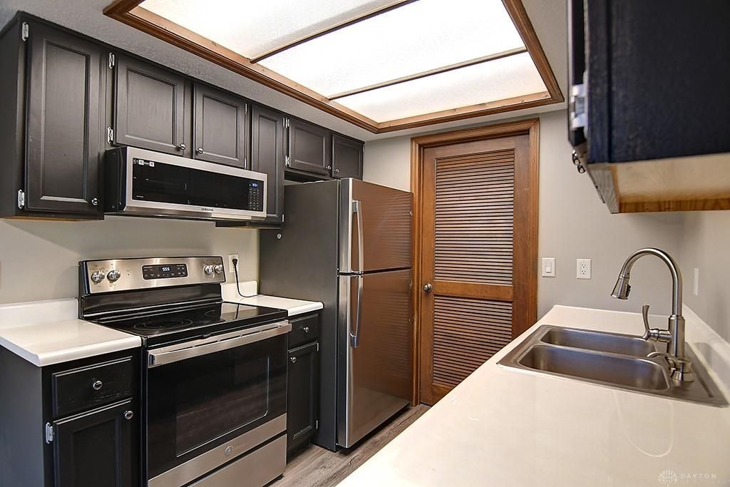 Large cul-de-sac townhome in Washington Township, no city income tax, Centerville Schools! Big living room with fireplace and wet bar. Half bathroom off the living room for your convenience. Kitchen with range, refrigerator and dishwasher. Washer and dryer hookup with private wooded back patio. Upstairs 2 large bedrooms with ceiling fans. Full bathroom with 2 sink vanity that is separate from shower and toilet. 1 car attached garage with additional parking space. Video showing available upon request. available now
