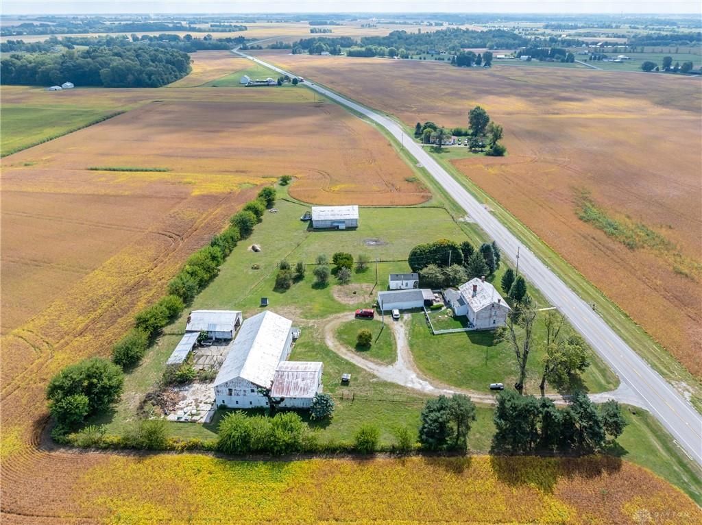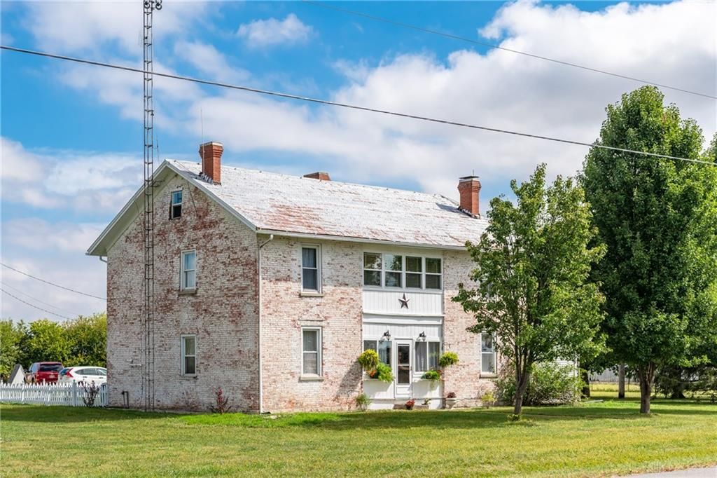 Welcome to the historic Evans Farm, known locally as “Doc Evans,” a rare opportunity to own a piece of Ohio history. Built circa 1854 by the Shigley family and later home to A.B. “Doc” Evans, an influential figure in Ohio agriculture. This stately two-story brick farmhouse sits on 20.75 acres in the Greeneview School District. The 3,516 sqft home offers 4–6 bedrooms, 2 full baths, parquet oak hardwood floors, and a beautifully remodeled kitchen with granite pegmatite countertops and slate flooring. Warmth and character flow through the breakfast and dining rooms, family room with Vermont Castings wood stove, and enclosed porches, while modern comforts include updated HVAC, whole-house A/C, and a reverse osmosis water system. A 12x24 heated/cooled art or music studio with kitchenette, a two-car garage with workshop, and multiple barns and outbuildings including a 40x88 main barn with stalls and hay storage, a 57x60 pole building with pull-through for equipment, and livestock facilities make this property ideal for farming, hobbies, or multi-use living. The land features 15 acres of tillable farmland (CAUV tax benefit, generating $3,520 annual rent), 1.6 acres of fenced pasture, and a charming orchard with apple, peach, pear, and cherry trees. The seller is motivated, having already secured a new home, and is open to parceling off the land south of the residence. With its rich history, agricultural potential, and flexible opportunities, this remarkable property is being sold as-is and awaits its next steward.